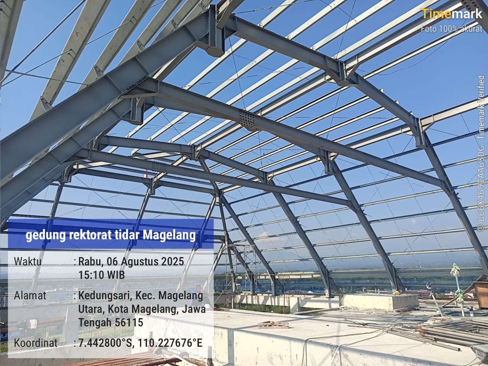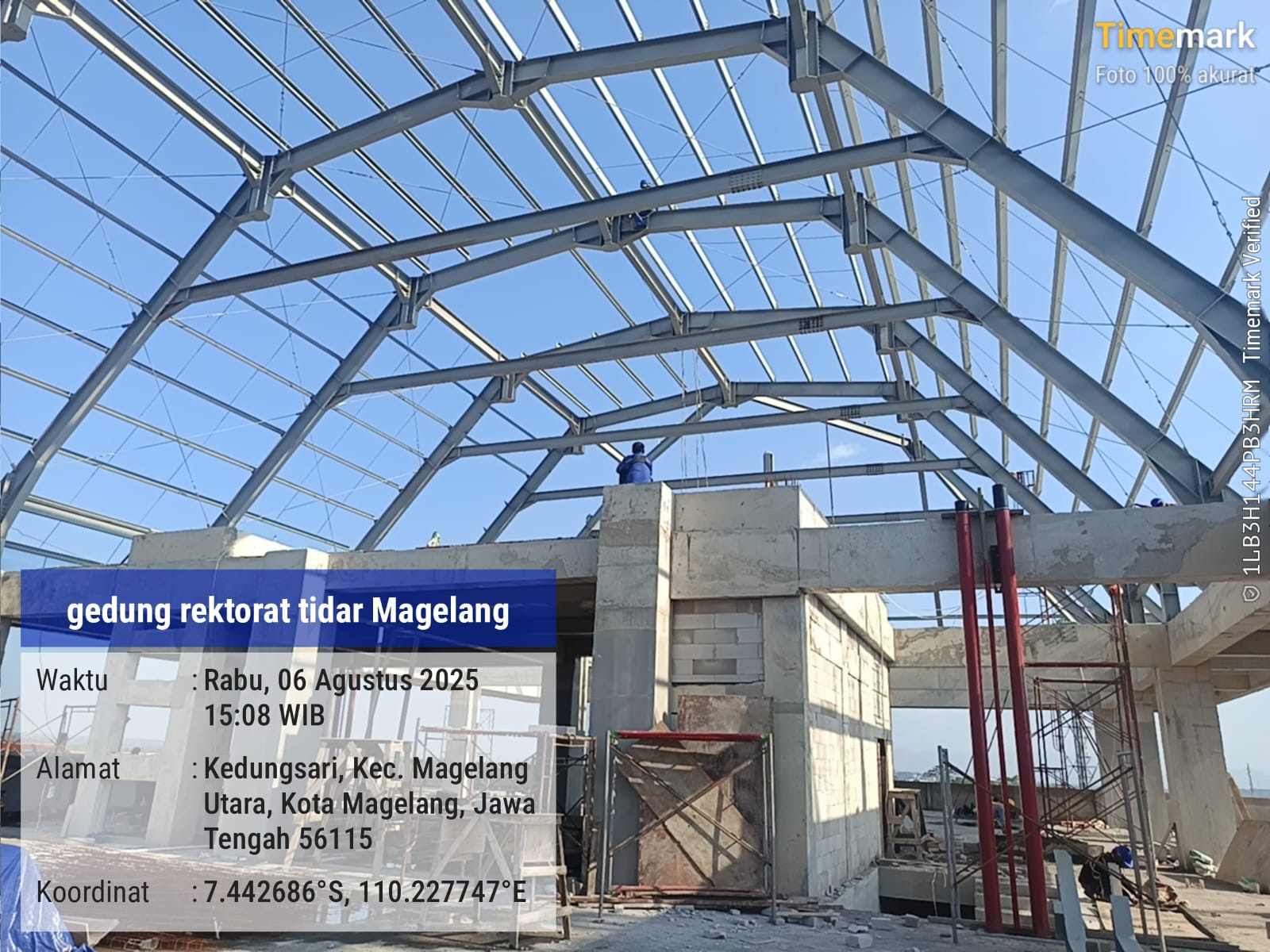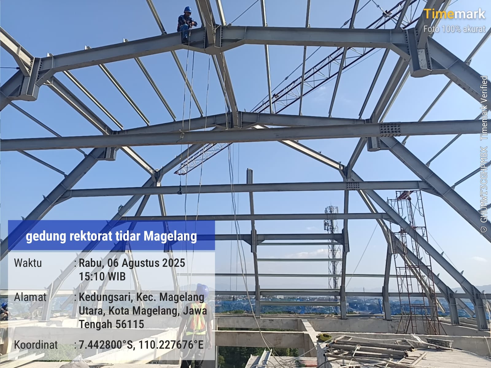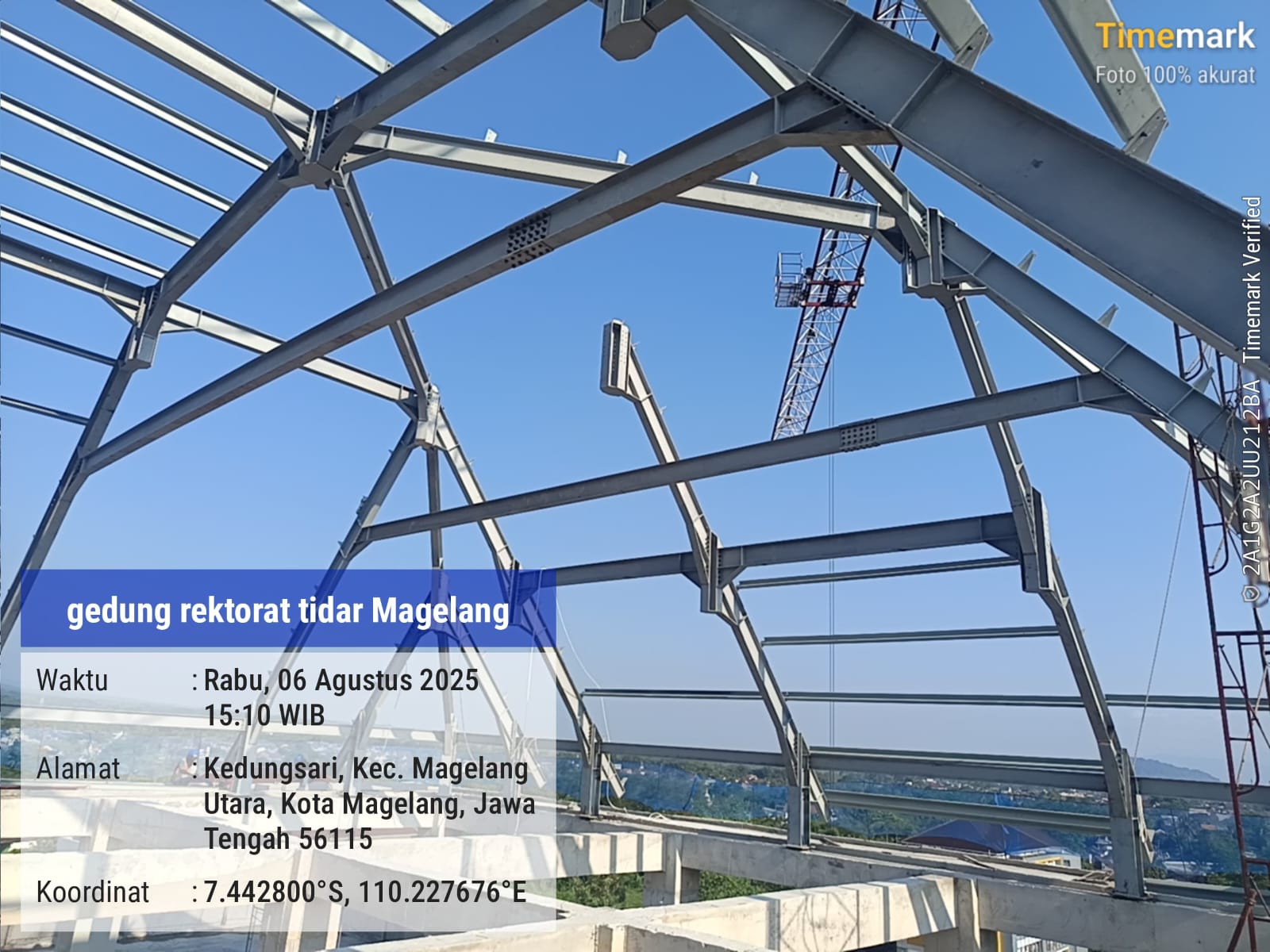 Erection konstruksi baja pada pembangunan gedung rektorat tidar di Magelang, Jawa Tengah